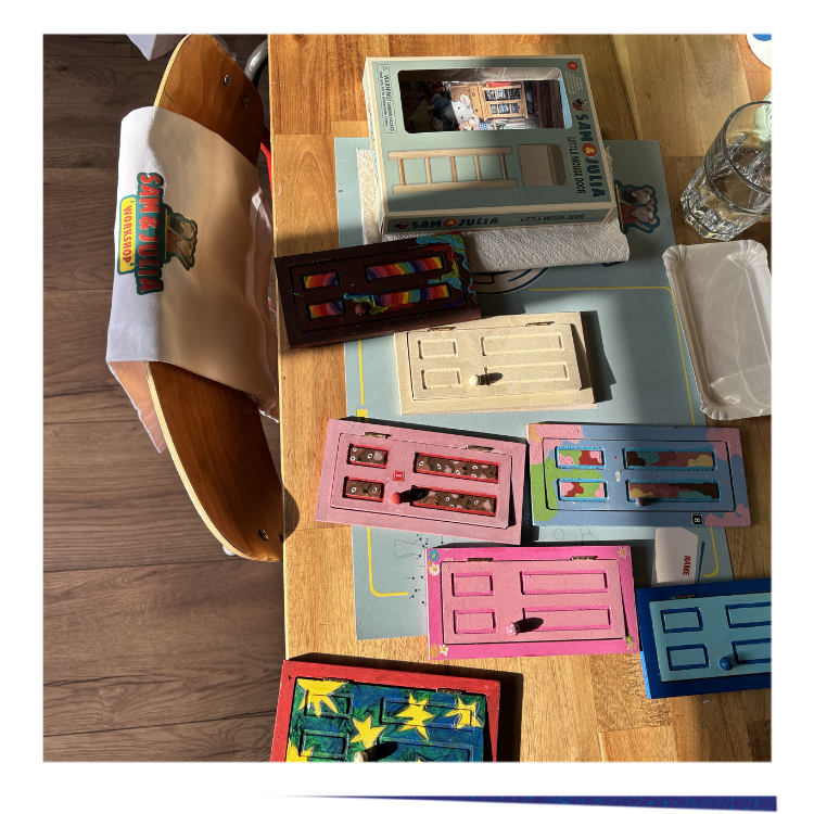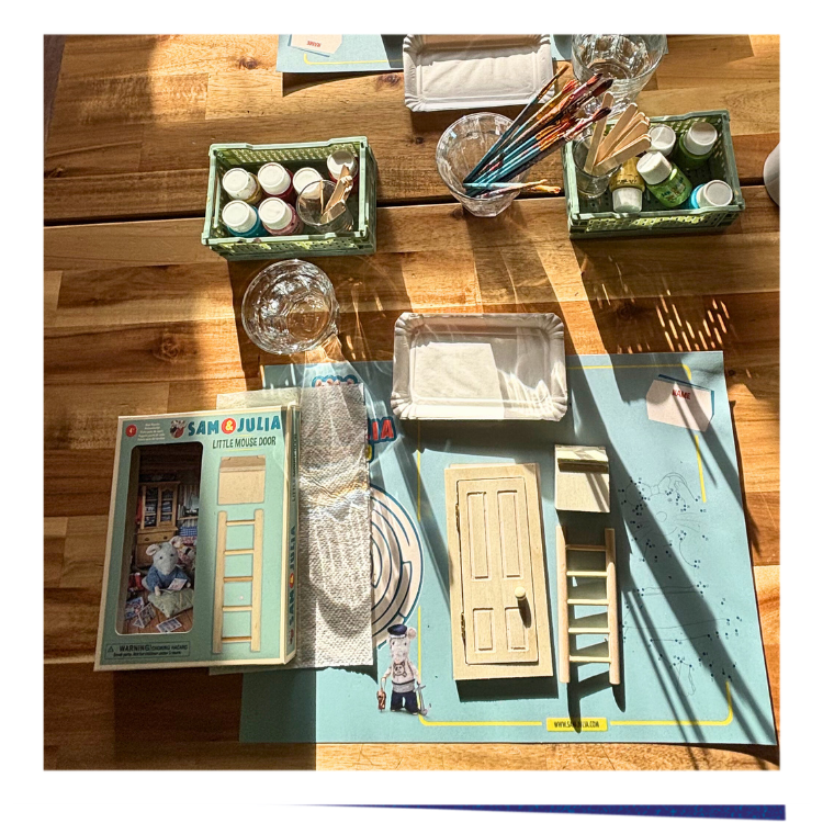 Take a seat, put on your Sam & Julia apron and start decorating your very own Little Mouse Door with paint, markers and all kinds of fun materials. Pink polka dots, neon animal print, hearts or rainbows? You decide what your door will look like.